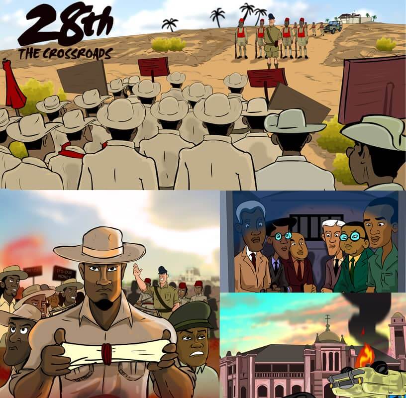 ‘28th The Crossroads’ is an animation film that is set in the Gold Coast in February 1948. The film recreates the events leading to the Crossroad shooting of 2nd world war veterans in Osu in Accra in the Gold Coast, which is what Ghana was called by its British colonial overlords before independence.